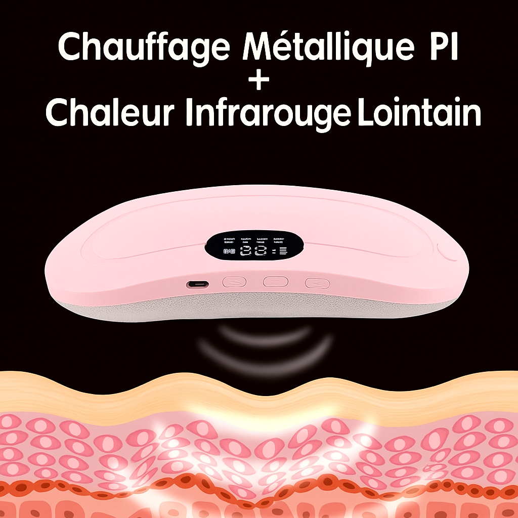 Chaleur thérapeutique infrarouge et massage professionnel combinés. Soulagez crampes menstruelles et douleurs lombaires en 3 secondes.